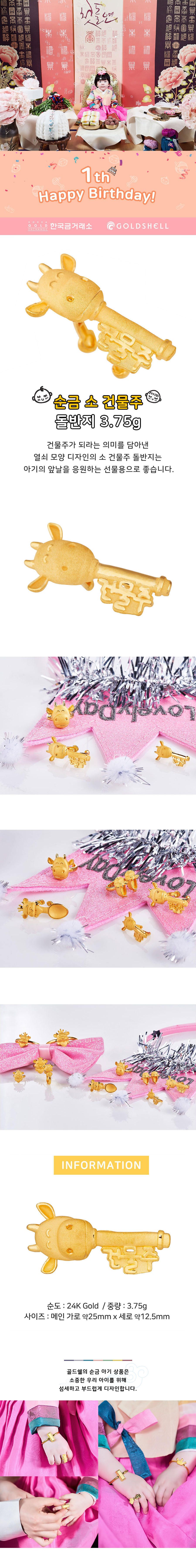순금 소 건물주 돌반지 3.75g